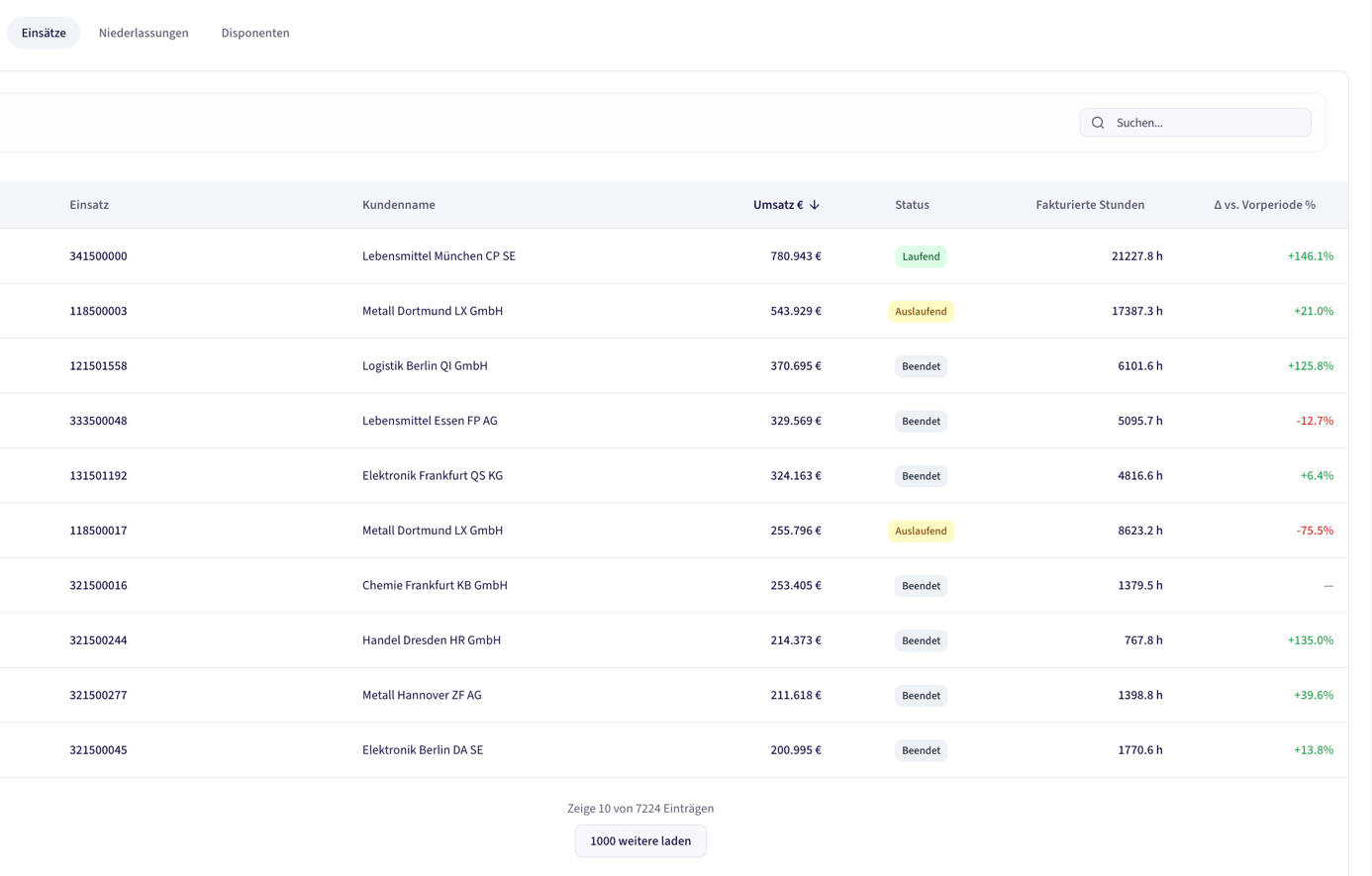 Ja. Tabellen sind sortierbar und enthalten in der Regel Aggregationszeilen, damit Sie schnell die jeweiligen Effekte erkennen und die Gesamtwirkung im Blick behalten. Klicken Sie dafür einfach auf den jeweiligen Wert in der Tabellenspalte.