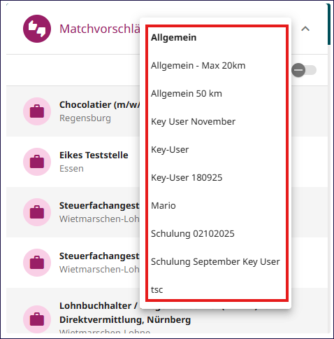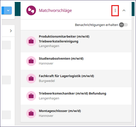 Matchvorschläge im zvoove Cockpit sind automatische Empfehlungen des Systems zu potenziell passenden Vakanzen für einen Kandidaten bzw. passenden Kandidaten für eine Vakanz.