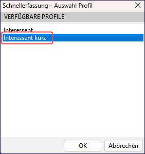 Wählen Sie anschließend das gewünschte Schnellerfassungsprofil aus.