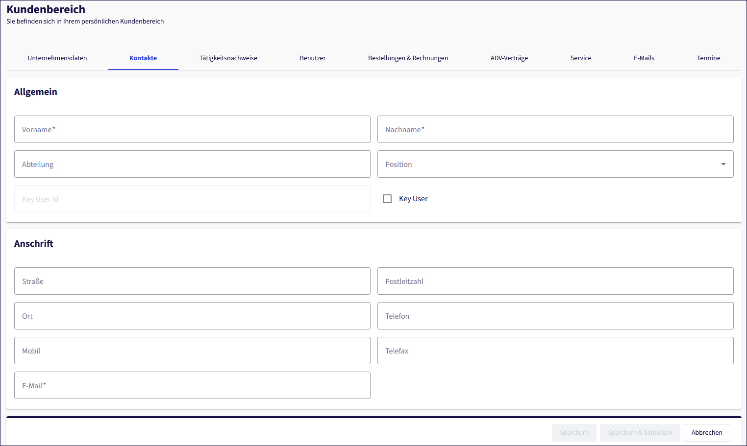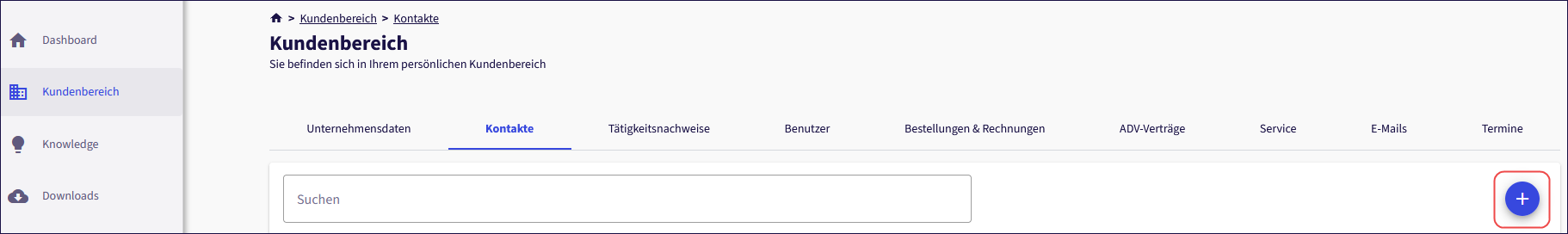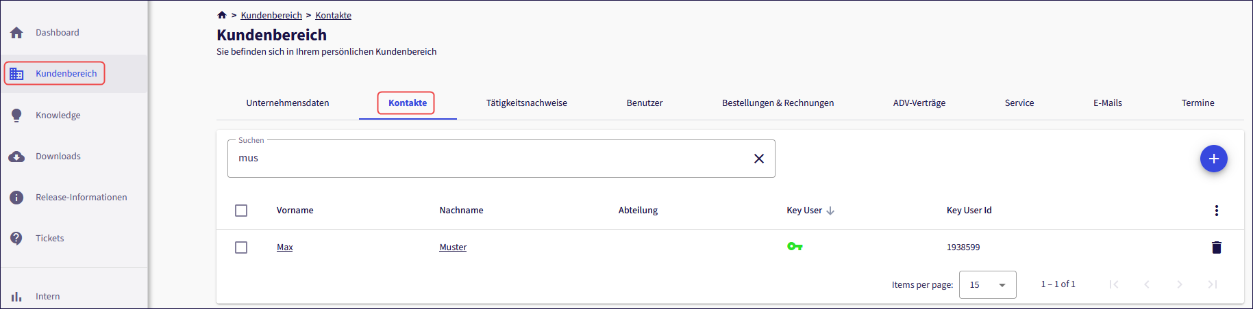 Einen Key-User richten Sie über unser Kundenportal in Ihrem “Kundenbereich → Kontakte” ein.